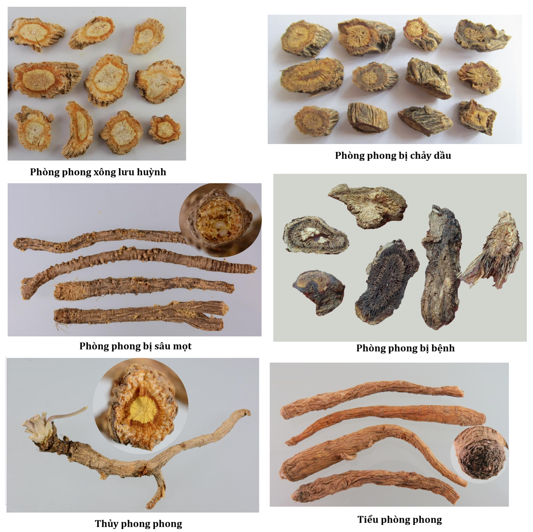 - Lát đen, lát mục (Hắc phiến, Hủ phiến): Lát đen và lát mục là do Phòng phong bị bệnh hoặc sâu bệnh trong quá trình sinh trưởng.
