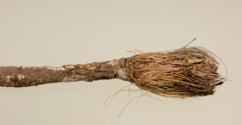 Đầu chổi: Phần đầu rễ Phòng phong thường có các gốc lá sót lại, màu nâu hoặc nâu sẫm, tập trung thành búi dài, hình dáng như cái chổi.