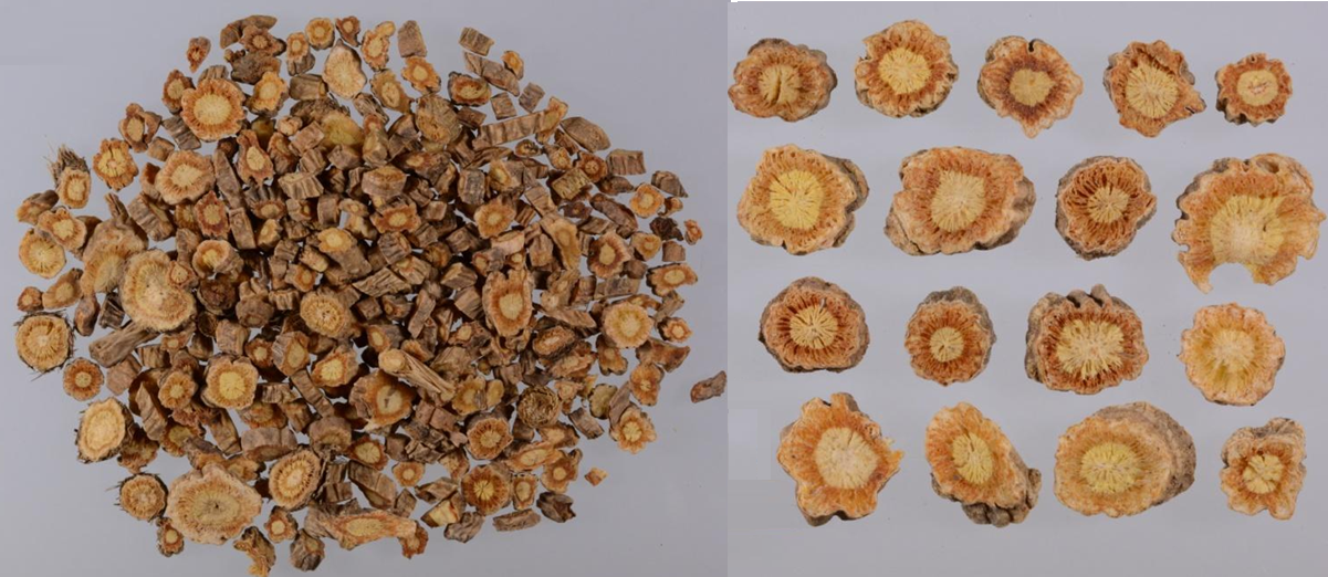 | Tính ứng dụng | Chất lượng tốt nhất, được Dược điển công nhận (về tính trạng), được ưa chuộng trên lâm sàng. | Thường được sử dụng rộng rãi trên thị trường. | Dễ bị nhầm lẫn và có thể chứa phần rễ đã trổ hoa (không dùng làm thuốc). |